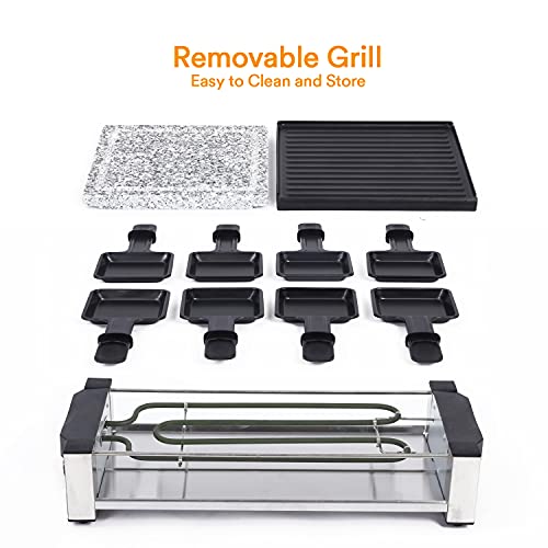 AONI Raclette Grill, Electric Indoor Grill Korean BBQ Grill, rimovibile 2-in-1 Non-Stick Grill Plate e pietra di cottura, ideale per le feste con 8 pentole per fondere il formaggio, 1200W