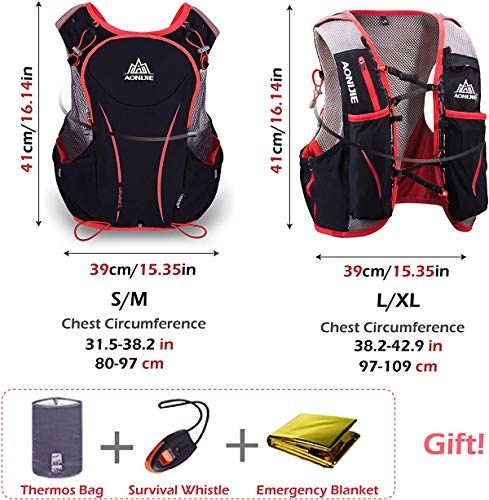 AONIJIE 5L Impermeabile Esecuzione Zaino Maratona Ciclistica Borse in corso Vest Bollitore Borsa Sport + 1.5L Idratazione del Sacchetto di Acqua (L/XL)