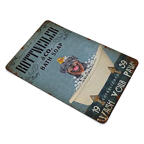 AOOEDM Targa in metallo vintage da bagno Rottweiler Targhe in metallo per uomo Cave Funny Art Wall Plaque Kitchen Bar Pub Coffee Shop Wall Decor