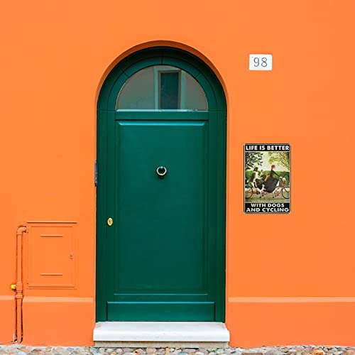 AOOEDM La vita è migliore con i cani e il ciclismo Targa in metallo vintage Targhe in metallo per cucina con placca da parete con arte divertente della caverna dell'uomo