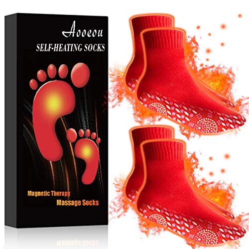 Aooeou Calzini Magnetici Tormalina Riscaldati Calzini - Calzini Termici Uomo Donna, Suola Scalda, Scaldapiedi, Riscaldatore Scarpe, Termici Invernali Neri Sportivi Calzini per Piedi Caldi 2 Paia