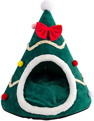 AOOPOO, casetta per gatti con albero di Natale, ideale come cuccia per gatti e gatti, per casa o per gli amanti degli animali domestici, Verde (Grande)