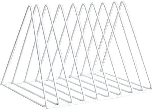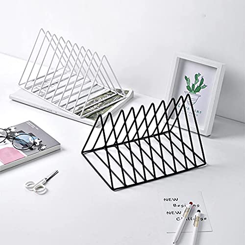 AOOPOO Fermalibri, Porta Libri, Portariviste Scrivania in Metallo, 9 Slot Portariviste Triangolo Porta Giornali Magazine Organizzatore Verticale per Casa Ufficio Libri CD Documenti (Bianco)