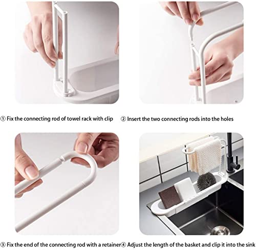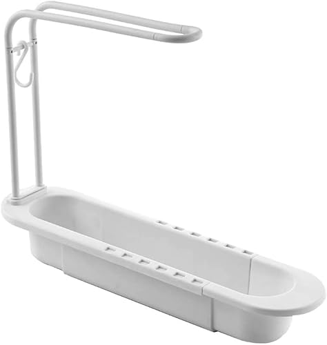 AOOPOO Supporto per Lavello Telescopico Regolabile Porta Spugna Lavandino Cucina Supporto per Cestello per Lavello Porta Spugne Utensili Organizer Vassoio per Espandibile Portasciugamani (Bianco)