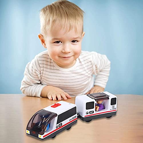 AOOPOO Treno Locomotiva a Batteria (connessione Magnetica) - Set di trenini da Viaggio potenti per Treni e binari in Legno Brio - Set di trenini Giocattolo per Bambini (Bianca)