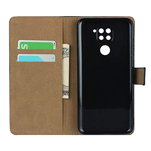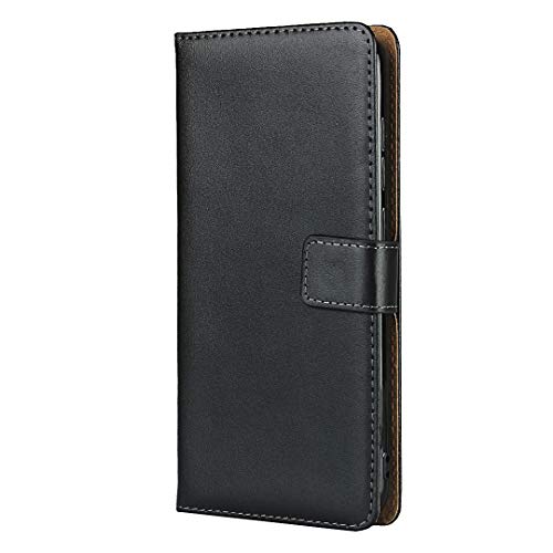 Aopan Xiaomi Redmi Note 9 Cover, Flip Custodia in Pelle Vera Caso per Xiaomi Redmi Note 9, Nero