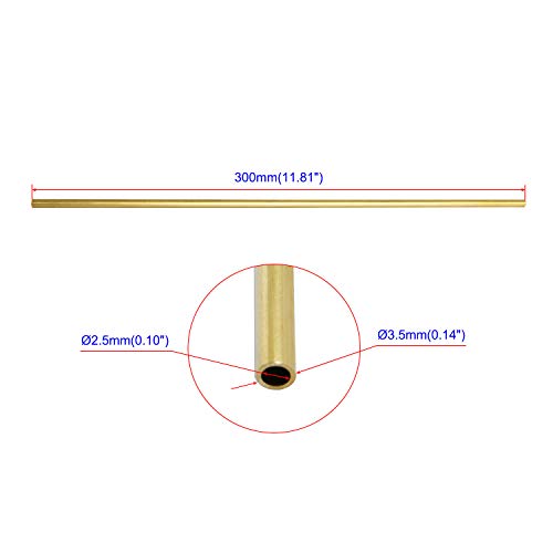 Aopin Tubo tondo in ottone in rame ID 2,5 mm / 1/10" x OD 3,5 mm / 7/5" tubo di rame cavo - 300 mm / 1 Ft / 30,5 cm / 30,5 cm / 30,5 cm / 30,5 cm / 30,5 cm / 12,5 cm / 2 pz