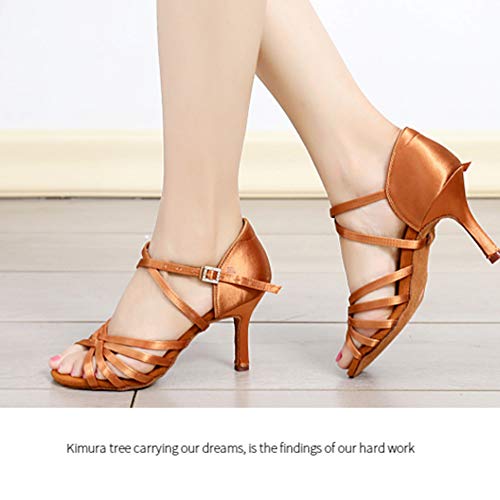 AOQUNFS Scarpe da Ballo Latino Americano Donna Scarpe da Ballo Salsa Bachata da Sala,EM213-DB-Marrone-8.5,EU39