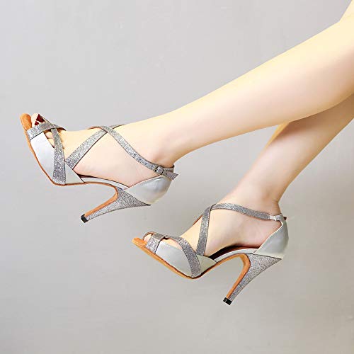 AOQUNFS Scarpe da Ballo Latino Americano Donna/Bambina Tacco Strass Salsa Bachata Caraibico Scarpe Ballo Liscio Donna Valzer,L386-Argento-10,EU38