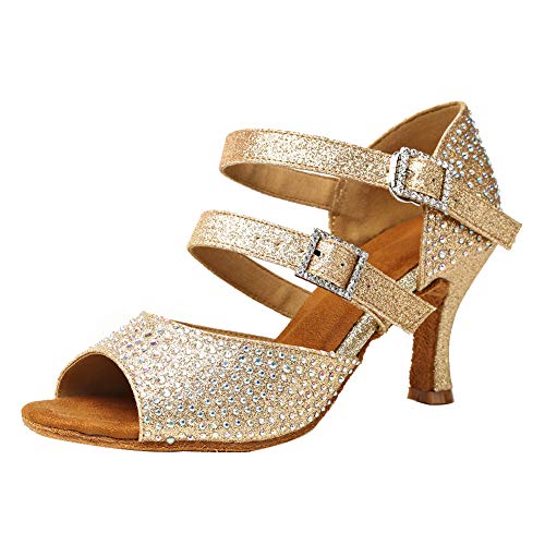 AOQUNFS Scarpe da Ballo Latino Americano con Strass Sala da Ballo, Modello YCL253-8.5-Oro,EU42