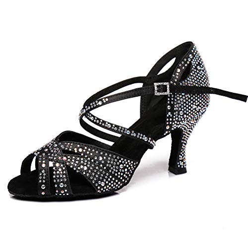 AOQUNFS Scarpe da Ballo Strass Donna Latino Americano Scarpe Ballo Liscio Salsa e Bachata,YCL388-6-Nero,EU41