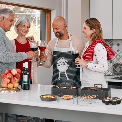 Set di Accessori per Friggitrice- Comprende 9 pezzi essenziali che miglioreranno la tua esperienza culinaria. Dai rivestimenti per friggitrice ad aria, griglia rettangolare, volant con 4 punte, pinze per alimenti, guanti, teglia per pizza allo stampo per torte, questo set ha tutto il necessario per espandere il tuo repertorio culinario e creare una varietà di piatti deliziosi.