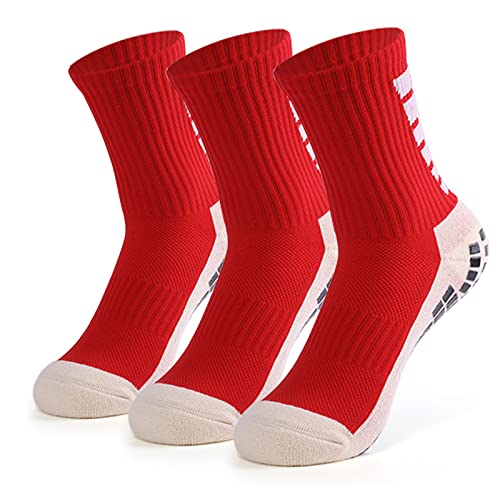 Aoresac Calze da Calcio 3 Paia Calzettoni Calcio Uomo Alte da Calcio Calzettoni Sportivi Calcio Antiscivolo da Adulto, Calzettoni Calcio Calzini da Calcio Unisex (Rosso)
