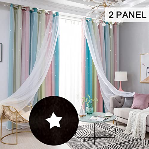 Aoresac Tende Camera Bambini Stella,Tende Camera da Letto Ragazze Tende per Finestre Oscuranti, 2 Pannelli Tende a stella con Occhiello, Carine Arcobaleno a Doppio Strato (2 PCS | 134 * 160CM, Rosa)
