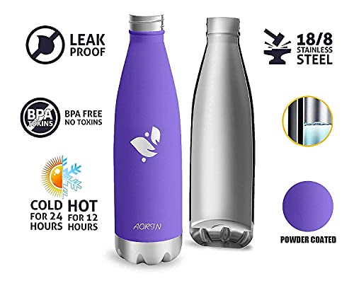 AORIN Doppia Bottiglia per Vuoto in Acciaio Inossidabile, processo di verniciatura a Polvere, Resistente ai Graffi, Facile da Pulire.(lavanda-750ml)