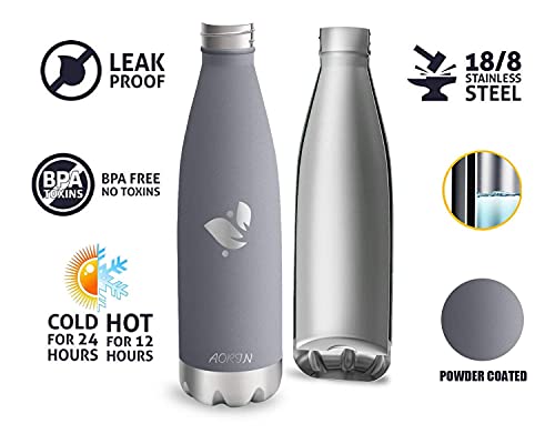 AORIN Doppia Bottiglia per Vuoto in Acciaio Inossidabile, processo di verniciatura a Polvere, Resistente ai Graffi, Facile da Pulire.(grigio-750ml)