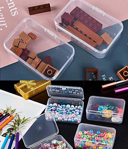 AOTOPYU 24 Pezzi Rettangolo Plastica Contenitori(8,5x5,5x2,5 cm) con Etichetta adesiva in carta kraft, Mini Trasparente Immagazzinaggio Scatola con Coperchio Incernierato per Piccoli Perline