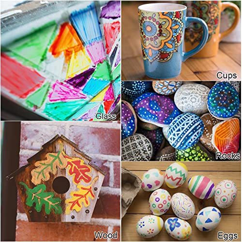 2021 L'ULTIMO MIGLIORATO DESIGN A DOPPIA PUNTA - I nostri pennarelli a vernice acrilica presentano un design a doppia estremità per linee sottili e riempimento di grandi aree. Quindi possono essere attaccati a una varietà di materiali artistici come tazze, uova di Pasqua in plastica, pittura di zucca di Halloween, forniture artigianali di Natale, carte regalo, rocce, scarpe di tela, metallo, dischi di legno, vetro, pittura su tazze, vaso di argilla, stoffa.