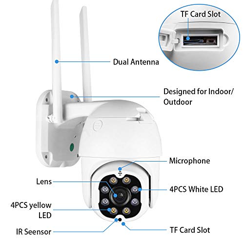 【Rilevamento del movimento in tempo reale】 - Registra automaticamente su scheda SD quando questa videocamera di sicurezza WiFi rileva eventuali movimenti. Slot per scheda SD esterna per una facile installazione della scheda SD. (Nessuna scheda SD preinstallata).