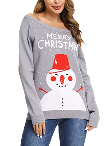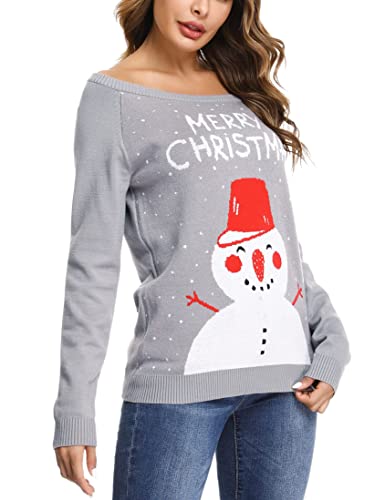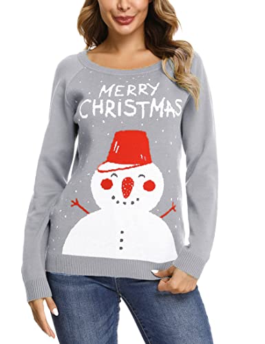 Aottori Maglione di Natale Donna Maglioni Natalizio Girocollo Pullover in Maglieria Natalizi Felpa Maglioni Sweatshirt Christmas Jumper per Autunno Inverno Grigio M