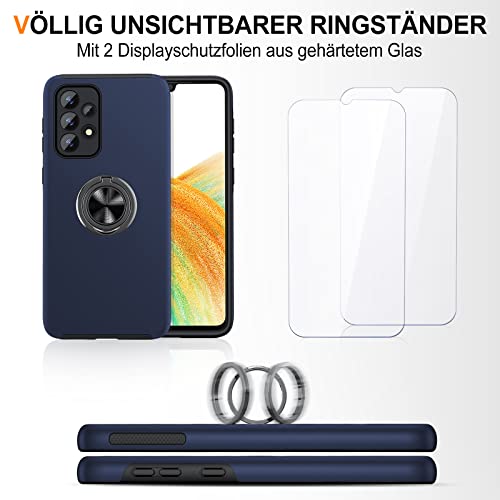 AOUIA set di 2 film di protezione in vetro temperato per samsung galaxy a33 5g con anello di supporto a 360 °-multistrato-supporto magnetico per auto-per samsung a33 5g,Blu