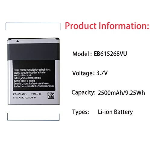 Aousavo EB615268VA - Batteria di ricambio compatibile con Galaxy Note SC06 615268VA Galaxy Note i9220 i717 GT-N7000 EB615268VU