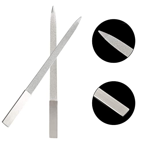 AOVNA Lima per unghie diamantata in acciaio inox, 3 pezzi, lima per manicure con doppio lato con manico lungo, 3 misure