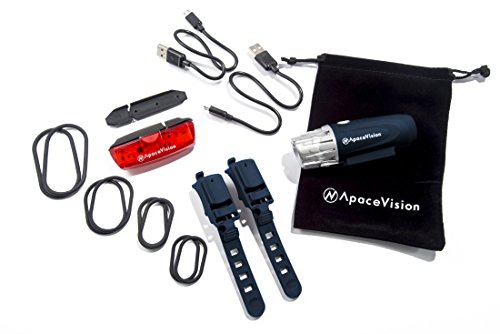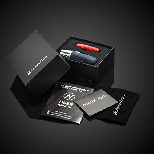 Apace Vision - Set di Luci Ricaricabili USB per Bicicletta - Potente Fanale Anteriore e Posteriore a LED per Bici da 300 Lumen - Faro Anteriore & Faro Posteriore Estremamente Luminosi per una Sicurezza Ottimale in Bicicletta (Blu)