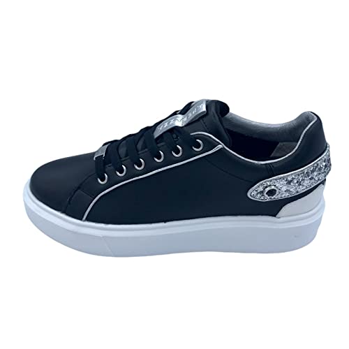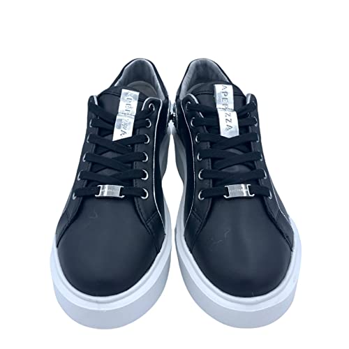 Apepazza Sneakers Donna Piper F1PIMPO1 Nero Pelle Fondo Bianco Chiusura Lacci (Numeric_41)