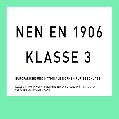 Qualità certificata secondo la norma EN1906 classe 3 per prestazioni affidabili per porte di uso frequente con maniglia della porta, maniglia della porta, maniglia della porta, maniglia o asta della porta.