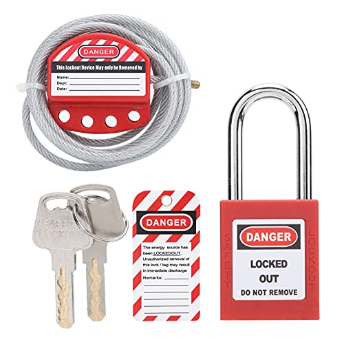 Chiusura con fibbia robusta - La combinazione include serrature regolabili per cavi, lucchetti e segnali di avvertimento che possono essere scritte.
