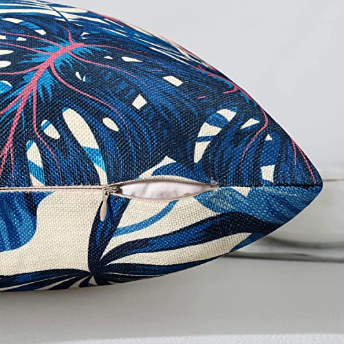 Blu All'aperto Federe Per Cuscini 45x45 CM Impermeabile Cuscini Divano Fodera Per Cuscino Divano Colorata Vegetazione Tropicale Lino Copricuscini Per Divano Per Soggiorno Giardino Terrazza 2 Pezzi