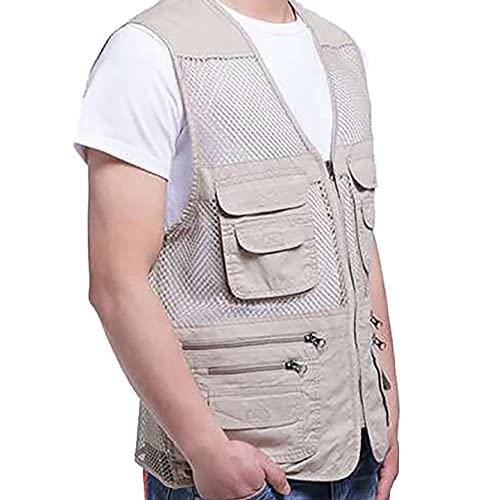 All'aperto Gilet da Pesca Traspirante da Uomo Multi-Tasche Fotografico -Panciotto Campeggio Pesca Gilet Tempo Libero Giacca,Khaki,XXL