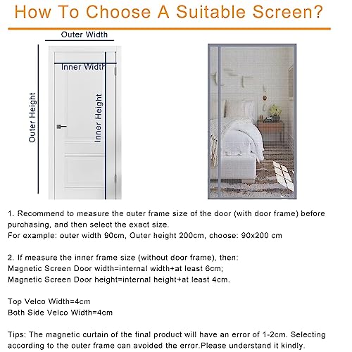 Chiusura automatica e design antivento migliorato: Dotato di un potente magnete, permette al bambino e all'animale domestico di passare attraverso in modo amichevole, permettendo all'aria fresca di entrare. Libera le mani. Un magnete più potente rende la rete dello schermo più vicina e più stabile. Aggiungi 2 barre di peso inferiore più pesanti al fondo per evitare zanzariera per porte di essere soffiate dal vento.