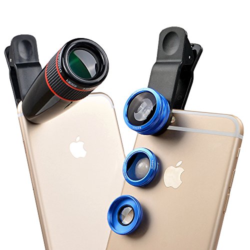 Apexel 4 in 1 Camera Lens 12x Teleobiettivo/Fisheye/grandangolare + Macro Lens con la Clip universale per iPhone iPad Samsung Galaxy Sony LG Motorola HTC Blu