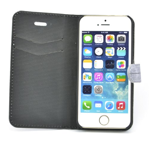 Apexel - Custodia in Pelle a Libro con Motivo Carta geografica, per Apple iPhone 5 e 5S, Colore Grigio