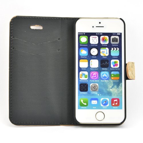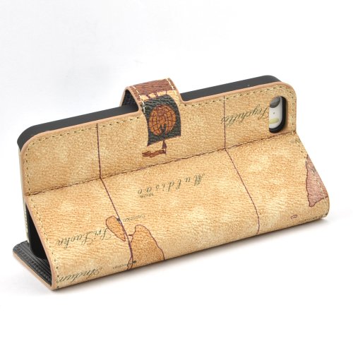 APEXEL - Custodia in Pelle a Libro con Motivo Carta geografica, per Apple iPhone 5 e 5S, Colore Marrone