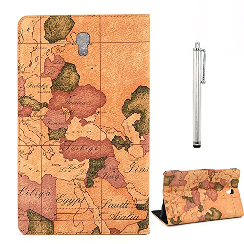 Apexel - Custodia Protettiva in Pelle con Motivo Cartina geografica per Samsung Galaxy Tab 3 da 10,1" (GT-P5200/ P5210/ P5220) Marrone Marrone Samsung Tab S 8.4