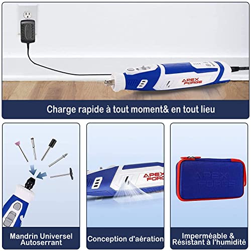 APEXFORGE 8V Batteria per Utensili Rotanti, Batteria agli Ioni di Litio da 2,0 Ah, 101 Accessori e Mandrino Autoserrante, Levigatura a Lunga Durata, Taglio Abrasivo e Incisione - M8