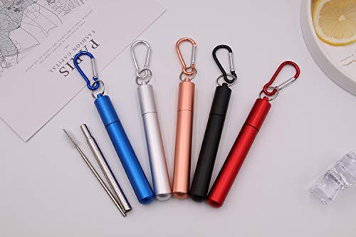 APIKA Cannucce riutilizzabili telescopiche - Cannucce Portatili in Acciaio Inossidabile Set di cannucce per Alimenti con Pennello per Pulizia, Custodia e moschettone(Nero)