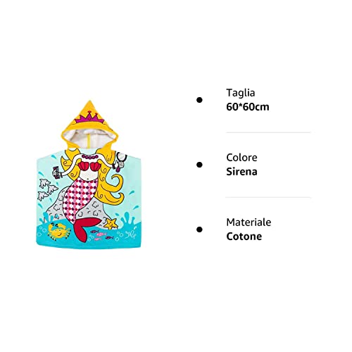 APIKA Telo Mare Bambini con Cappuccio Asciugamano da Bagno in Microfibra Nuoto per Bambini Accappatoio con Cappuccio Asciugamano per Poncho Carino(Sirena)
