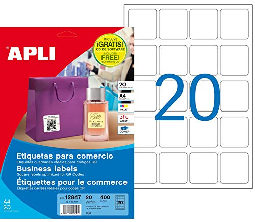 APLI 12847 - Etichette bianche permanenti 45,0 x 45,0 mm 20 fogli