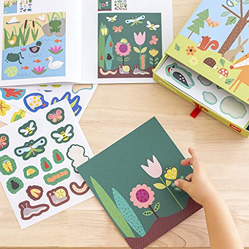 Apli kids, Include taccuino con esempi 18819-Set di Gommini di Varie Forme in Scatola di Cartone Modello Foresta-Set di Adesivi per completare Le Illustrazioni, Multicolore, 18819