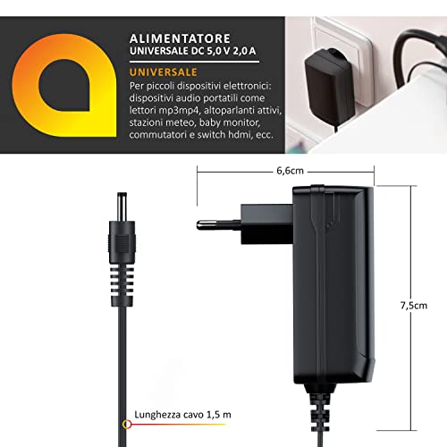 Denominazione del modello: Aplic Alimentatore universale DC 5,0V / 2,0A con spina cava/ spina a basso voltaggio | ideale come secondo alimentatore o alimentatore di ricambio per l'uso universale | 302087