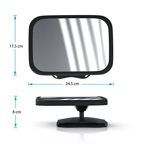 Uso: Tenete sempre d'occhio il vostro bambino e aumentate la vostra sicurezza personale nell'auto! Grazie allo specchio per sedile posteriore viaggerete più sicuri ed eviterete fermate inutili. Il pratico specchio per sedile posteriore di Aplic consente uno sguardo veloce al bambino sul sedile posteriore senza che il conducente debba girarsi inutilmente! Grazie alla superficie grande dello specchio, che misura 24,5x17,5cm, potete osservare il vostro bambino o neonato liberamente.