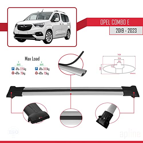 Apline Compatibile con Opel Combo (E) 2019-2023 Barre Portatutto FLY Modella Portapacchi Barre Tetto 3 PEZZI GRIGIO