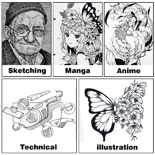 Ampia gamma di applicazioni: penna a punta nera perfetta per disegnare, schizzi, illustrazioni, arte, pittura, design, pubblicità, animazione, contorni.