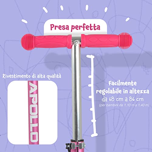 DIVERTIMENTO LUMINOSO: il monopattino per bambino/a dai 3 anni in su diel marchio Apollo aiuterá i piccoli a sviluppare l'equilibrio e la coordinazione. Col manubrio anodizzato e ruote LED non passerà inosservato!