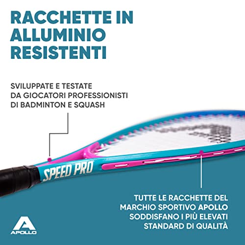Apollo Set da Speed Badminton | Racchette Badminton in Diversi Colori | Badminton Set | Set Racchetta Squash | Badminton Racchette e Borsa| Racchetta Crossminton | Volano Bambini
