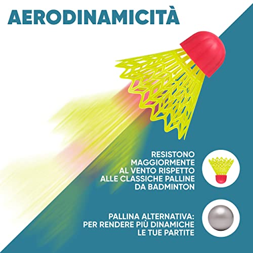SET BADMINTON: le racchette volano sono realizzate in alluminio e quindi più leggere, rendendo il gioco molto più piacevole. Le palline sono stabili anche con il vento e durano a lungo.
